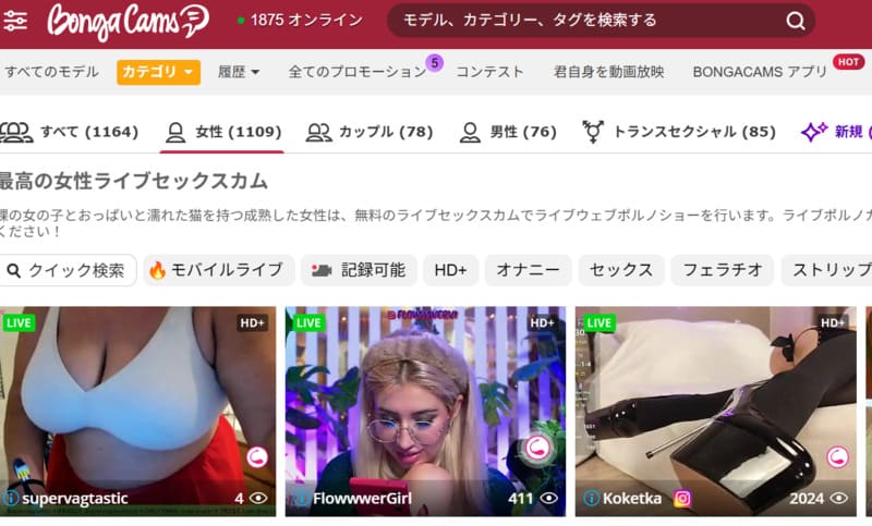 BongaCamsは、世界中のモデルが集う無修正ライブチャットの大手海外サイトです。