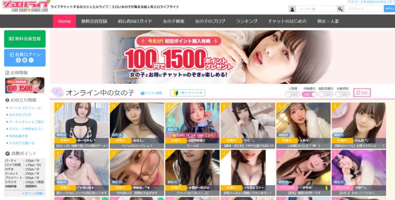 ジュエルライブは、若い女の子とリアルタイムでつながれる双方向チャットが魅力のライブチャットです。