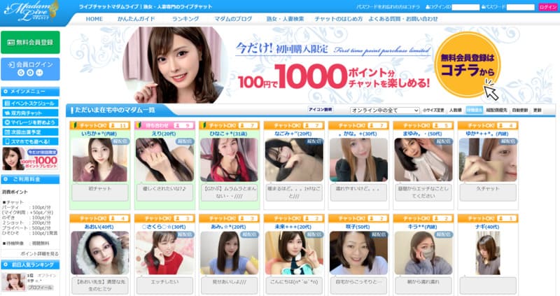 マダムライブは、人妻・熟女系に特化したライブチャットで、若い子にはない包容力や“色気を楽しめるのが最大の魅力です。